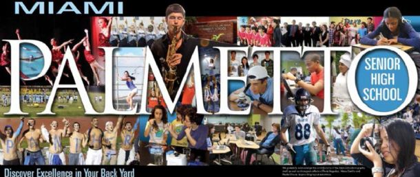 Palmetto Senior High School成立于1958年,位于美国佛罗里达名城迈阿密。在美国3万多所的中学当中,综合排名第251位,AP平均分排名第97位的蓝带名校。由于卓越的学术声望及培养本校学生进入美国优良大学的优秀记录,该校被认为是美国东南部最好的公立学校之一。学校被评为“蓝带学校”(蓝带是美国授予高中的最高荣誉)。学校包含不同种族,不同文化,不同社会经济情况的人群。Palmetto Senior High School是迈阿密戴德郡主要的一所白人为主的公立高中。在校人数高达上千,学校有74%白人,18%黑人,5%亚裔,3%国际学生。