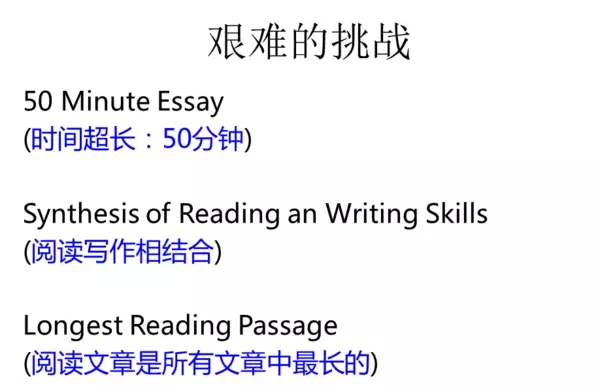 新SAT写作的材料基本上又是一篇阅读文章,阅读难度增加可想而知,要求学生阅读速度加快。