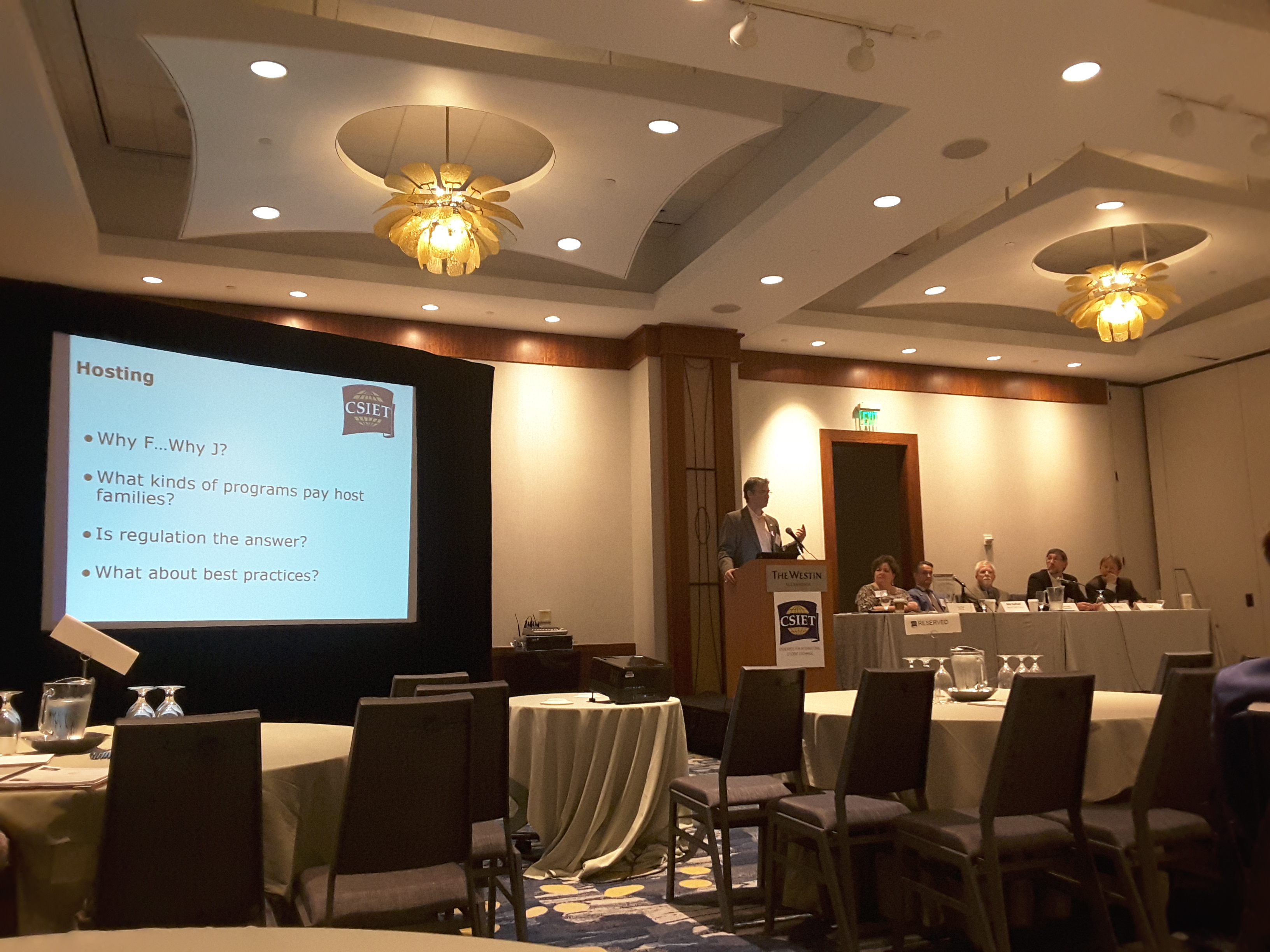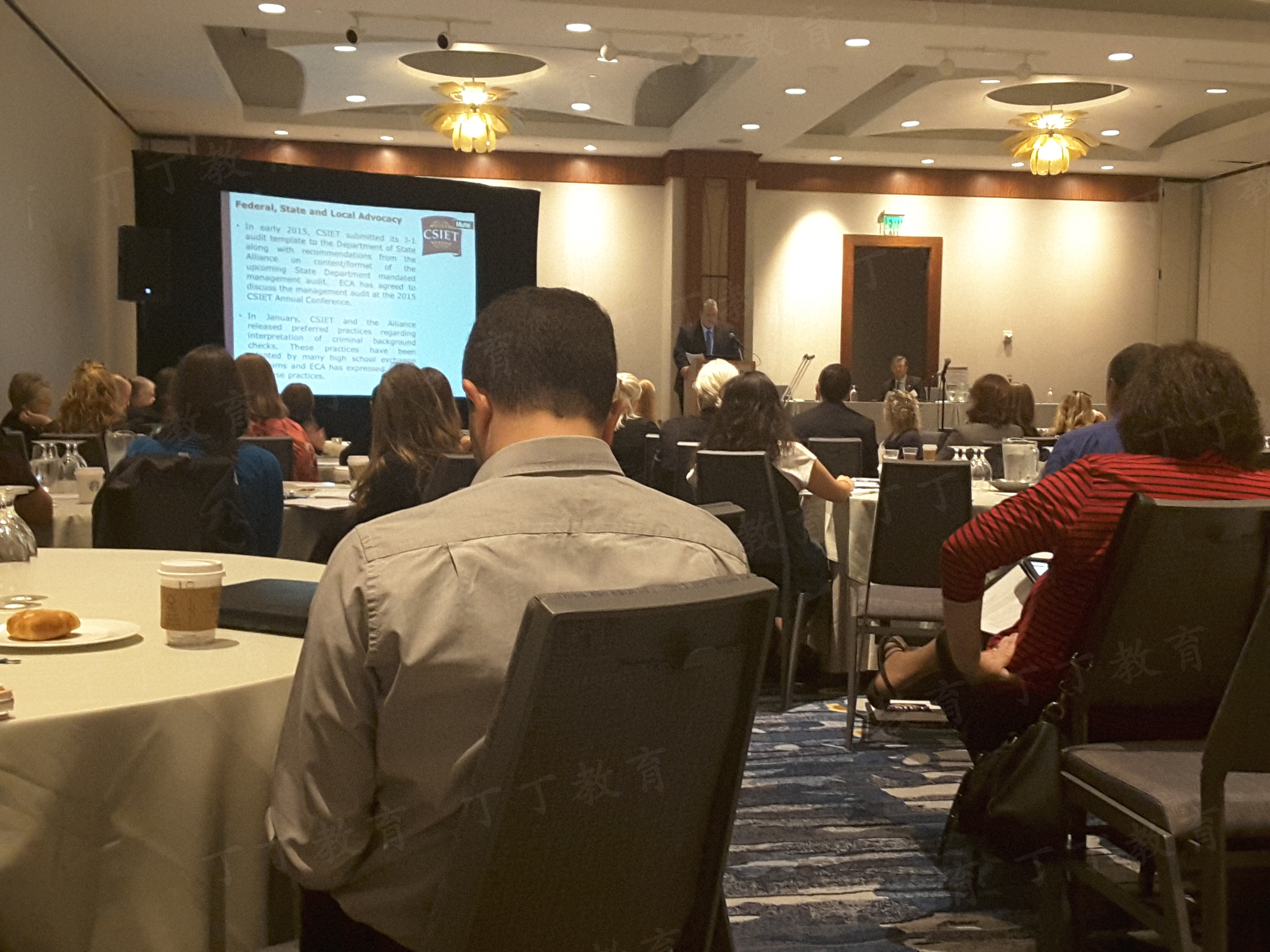CSIET每年都会举行年度会议,该会议旨在总结过去一年的交换生项目工作并发布新的一年交换生项目的标准及资讯。届时美国联邦政府行政人员、美国公立高中校方代表、寄宿家庭监管机构、ELTiS考试机构、交换生保险机构、各国优秀交换生代表、CSIET协会会员机构及世界各地的交换生组织都会出席会议。今年的会议已于2015年10月21-24号在弗吉尼亚州的亚里山德里亚成功举行,丁丁教育作为CSIET的会员也参加了今年的年度会议。下面就让丁丁教育为学生及家长简单介绍一下会议的内容及中国交换生常遇到的问题: