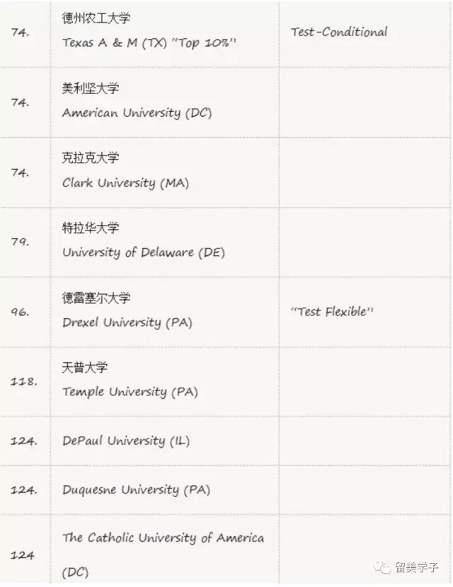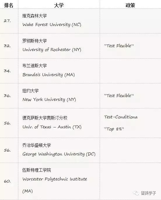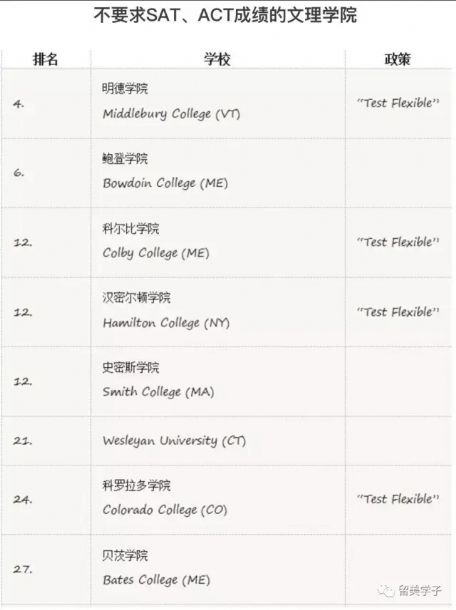 属于这一类的学校意味着,你需要用其他材料代替标化,比如SAT2,AP、IB等来证明你的学术能力,或者需要用英文写几篇长文书,证明你的思辨能力、英文功底。这一类的学校比较多,要求也不尽相同。纽约大学、明德学院、鲍登学院都属于此列。申请这一类大学要先提前了解清楚细节,向校方问明白具体要求,我们国际生是否适用等等。