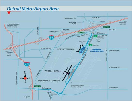 底特律机场(底特律机场新城,Detroit Metropolitan Wayne County Airport,代码DTW)位于位于密歇根州,很多在美国中部北边的同学会选择这个机场。麦克纳马拉航站(McNamara Terminal)是最大的国际航站楼,也是大家最常转机的。