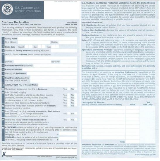 这张表空姐会在飞机上发给你,只要按照护照、DS-2019、I-20、机票上面的信息填写就好了,注意10-14题基本上都是要画NO的,也要注意千万不要带10-14里面提到的内容来美国。